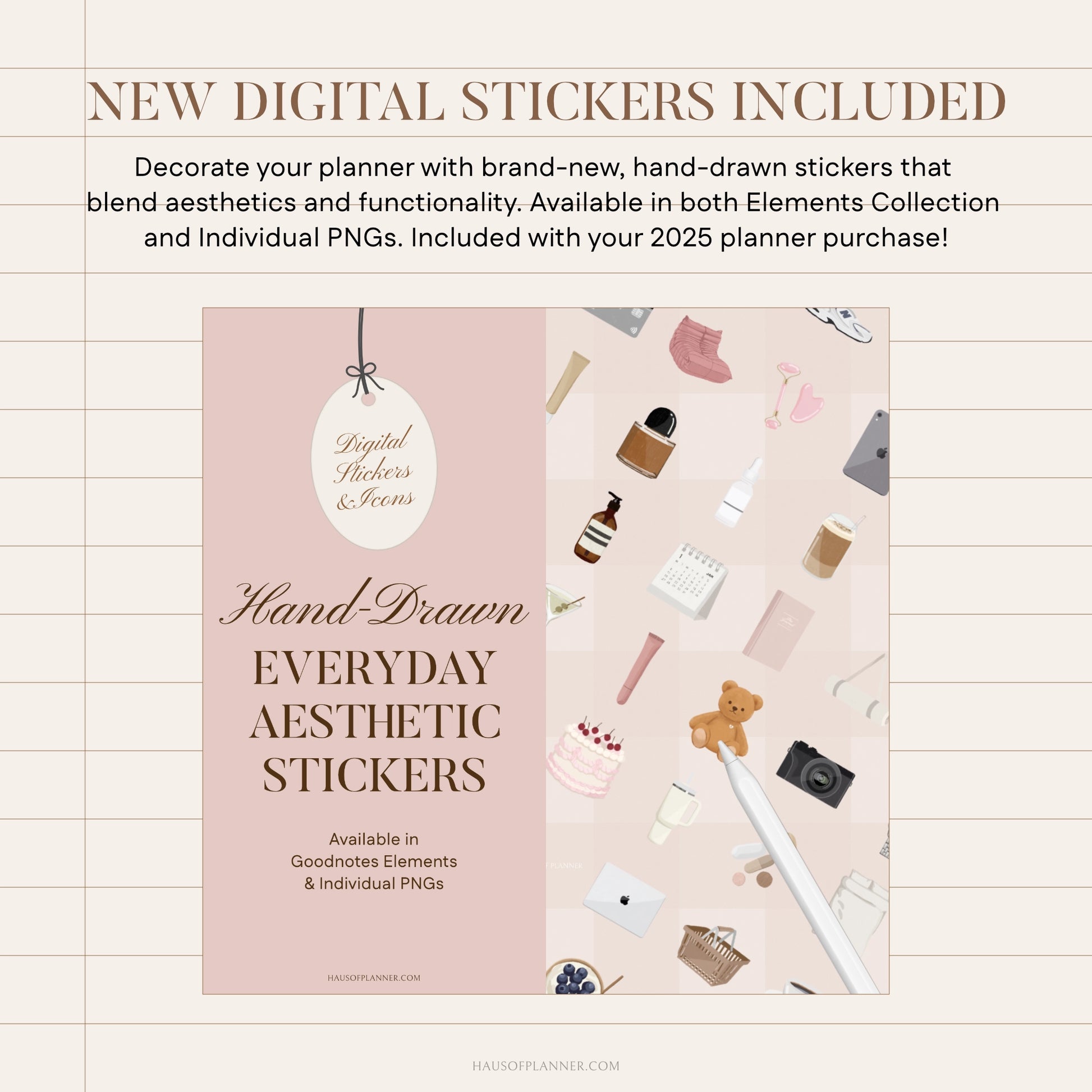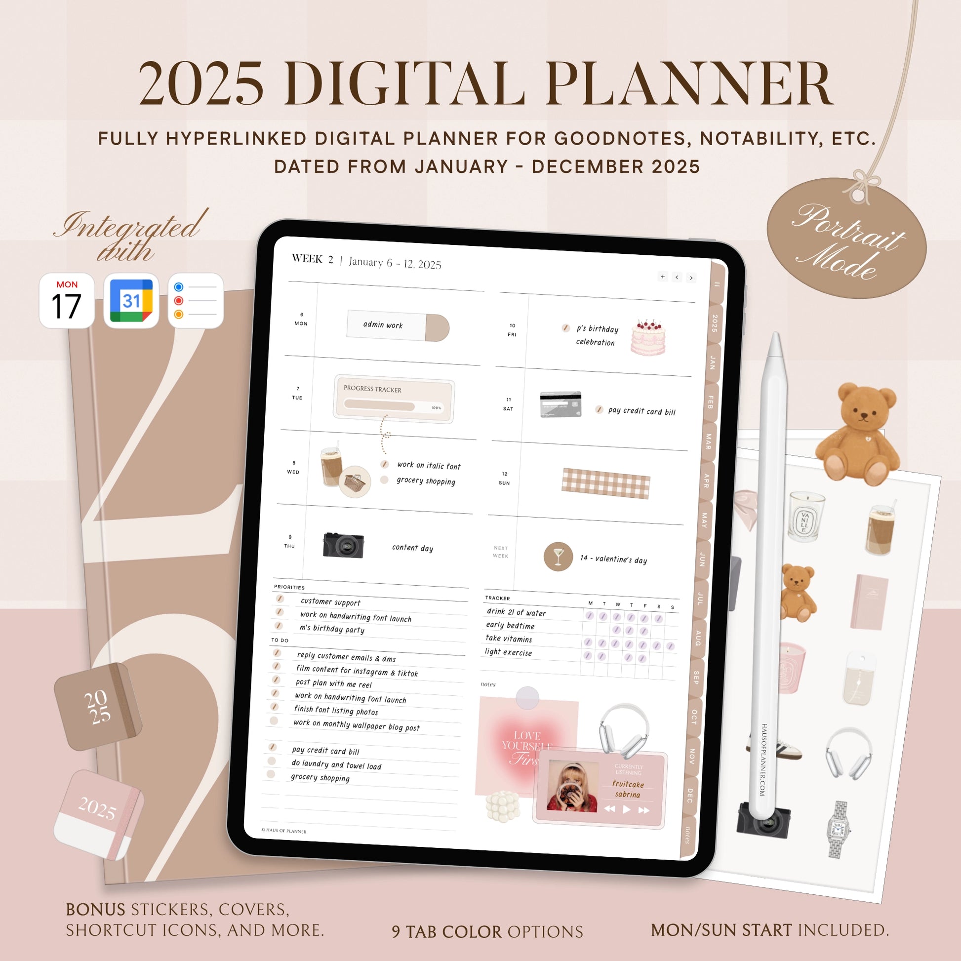 Meet the 2025 Digital Planner in Portrait, our fully hyperlinked planner dated from January to December 2025. Now with integration for Apple/Google Calendar and Reminders!