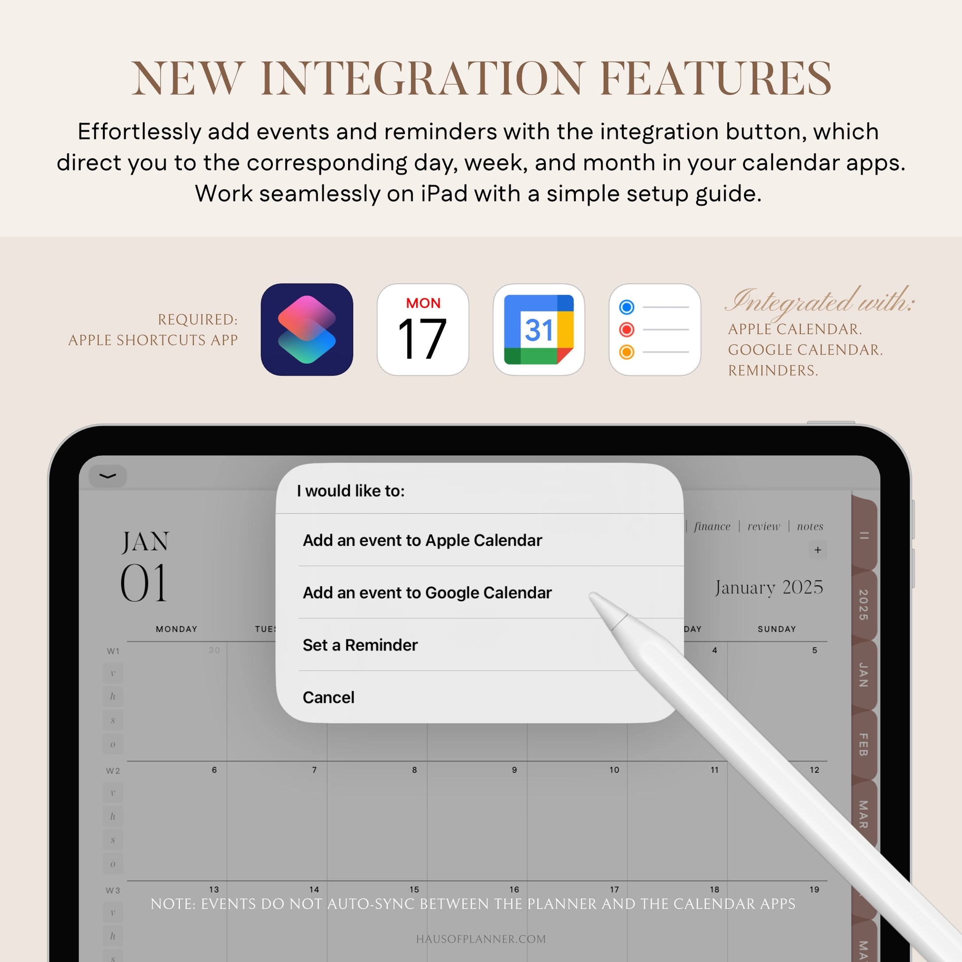 - Integrated with Apple Calendar, Google Calendar, and Reminders (iPad only; other devices can skip the integration setup and use the planner as a fully functional digital planner)
