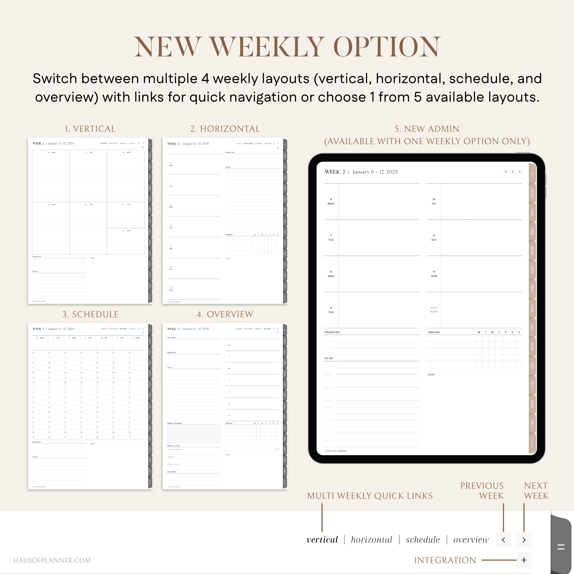2. One Weekly Layout: Select from 5 available options, including the 4 layouts and the new Admin layout.